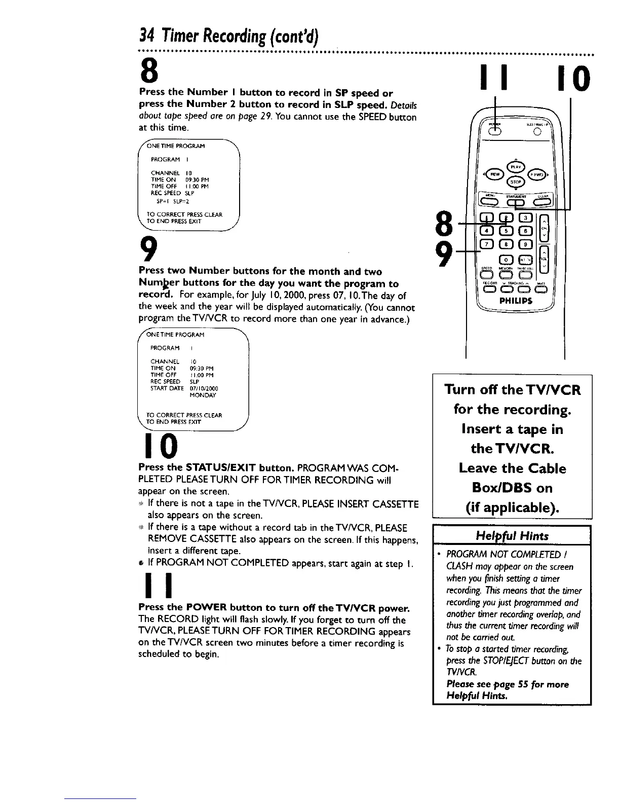 TV/VCR, PLEASETURN OFF FOR TIMER RECORDING appears