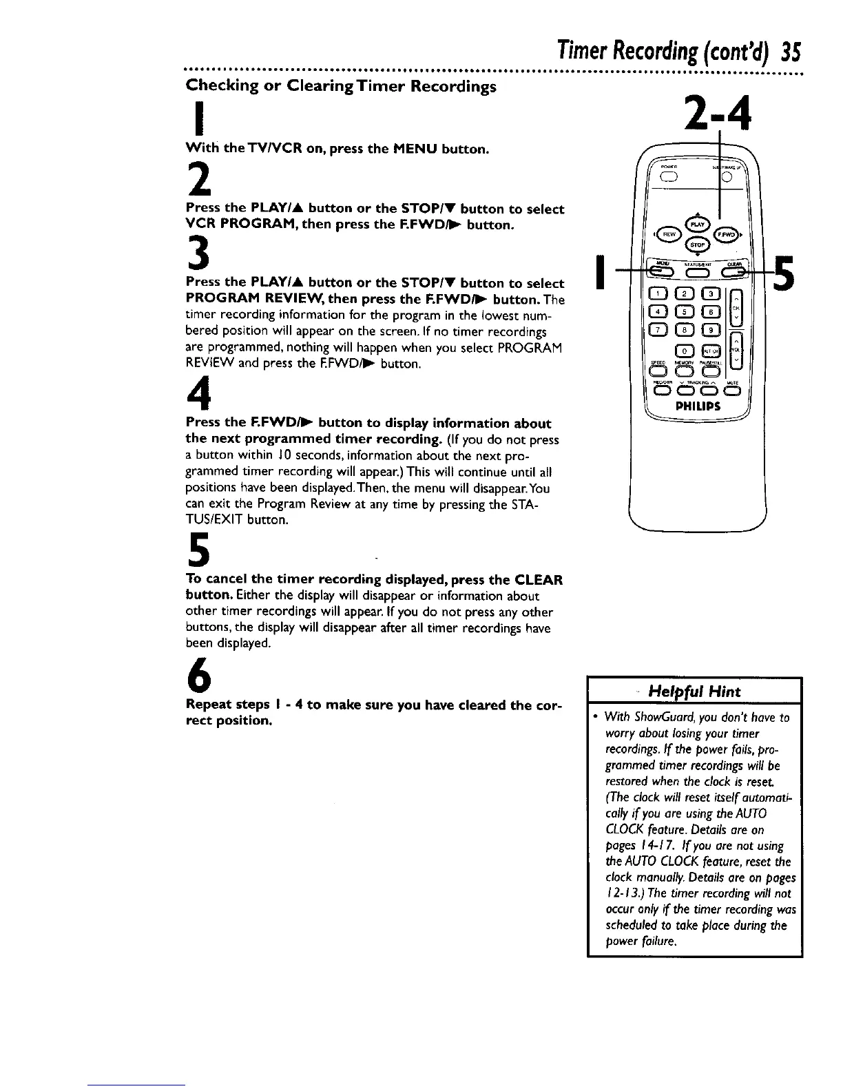 PROGRAM REVIEW, then press the F.FWD/I_ button. The