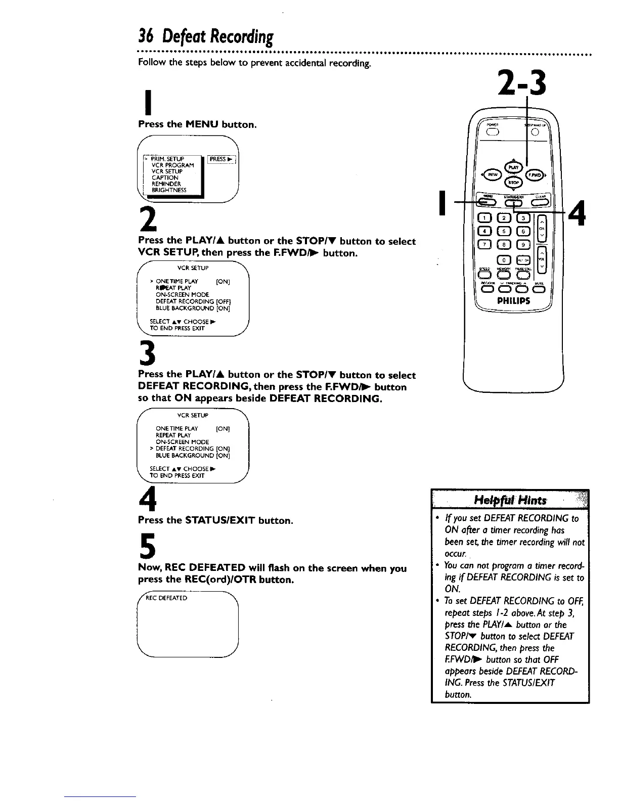 DEFEAT RECORDING, then press the F.FWD/_" button