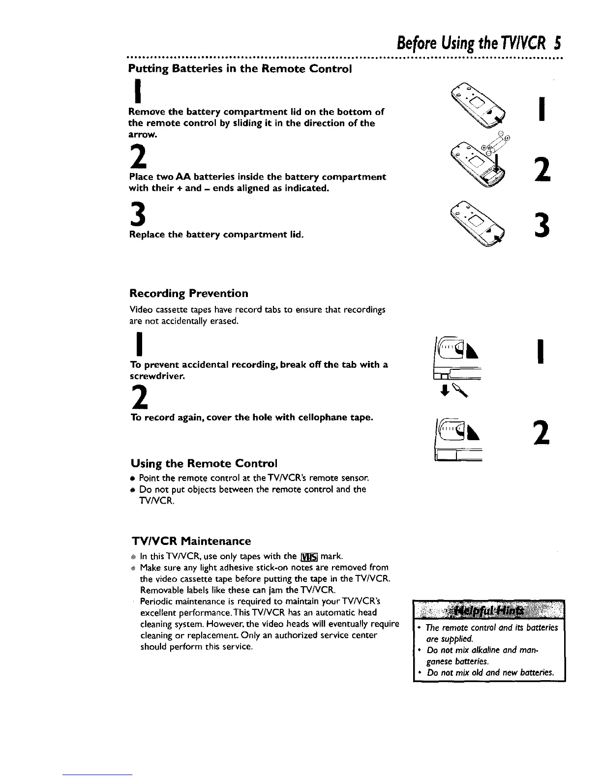 BeforeUsingtheTV/VCR5