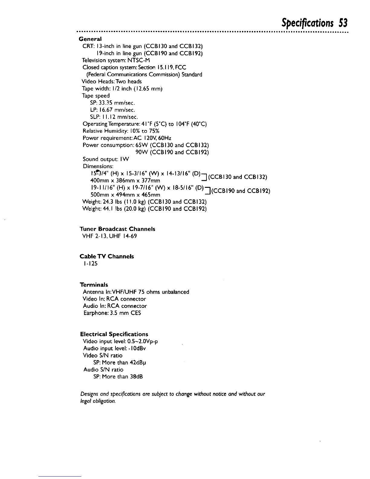 Weight: 44.I Ibs (20.0 kg) (CCB 190and CCB 192)