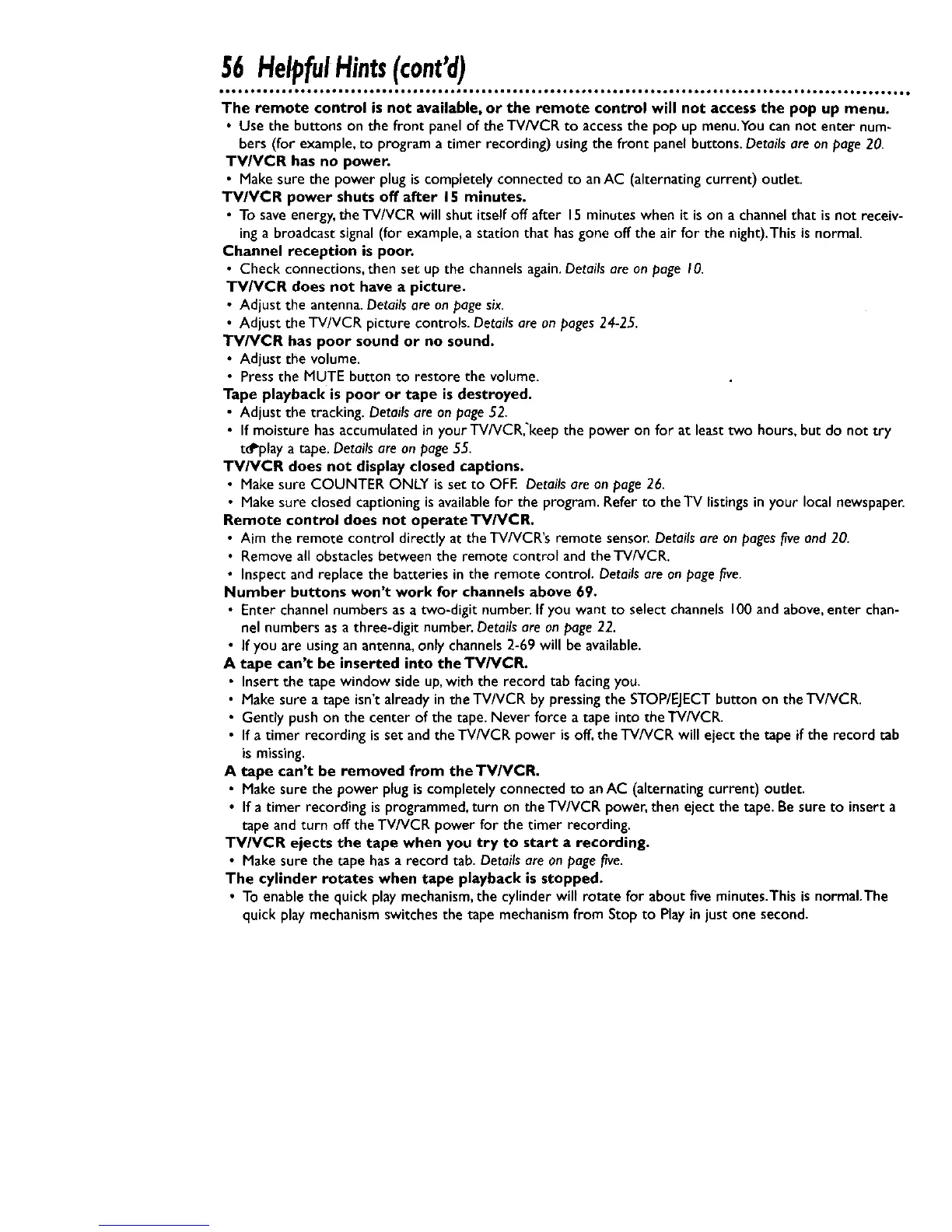 • If moisture hasaccumulated in your TV/VCR,'keep the power on for at least two hours, but do not try
