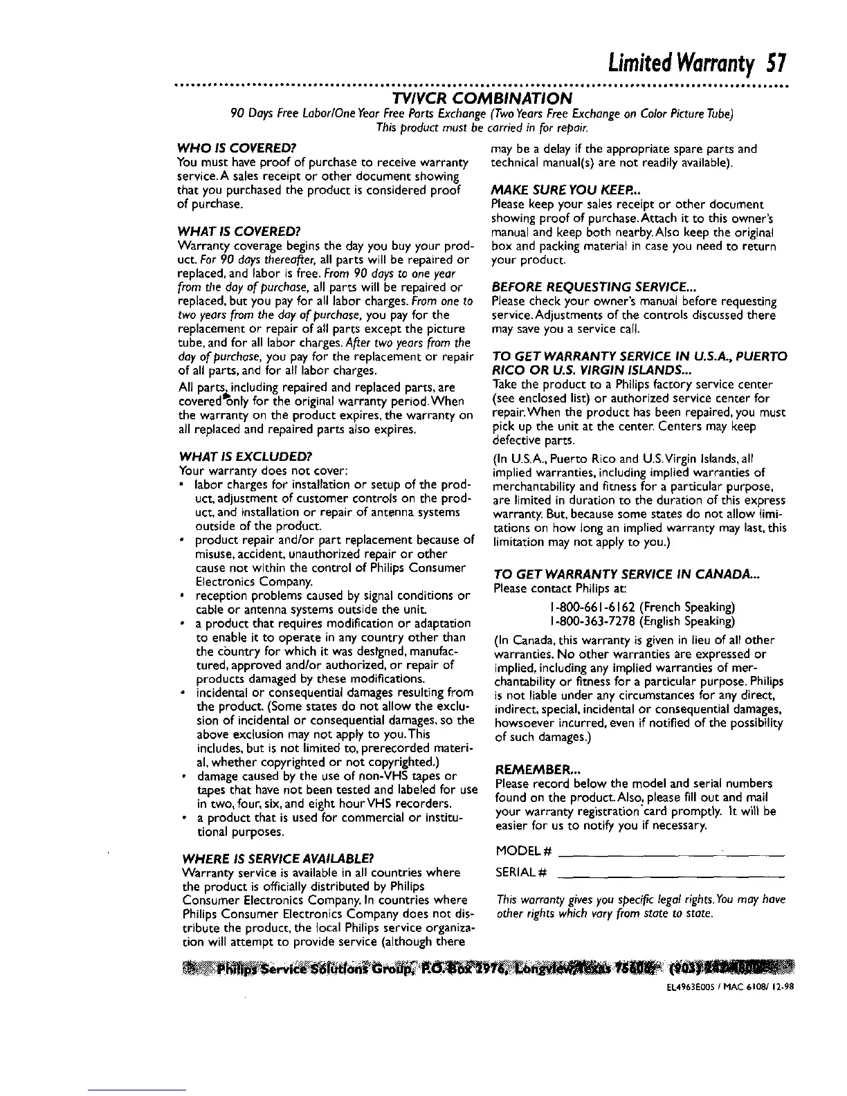 TO GET WARRANTY SERVICE IN U.S.A., PUERTO
