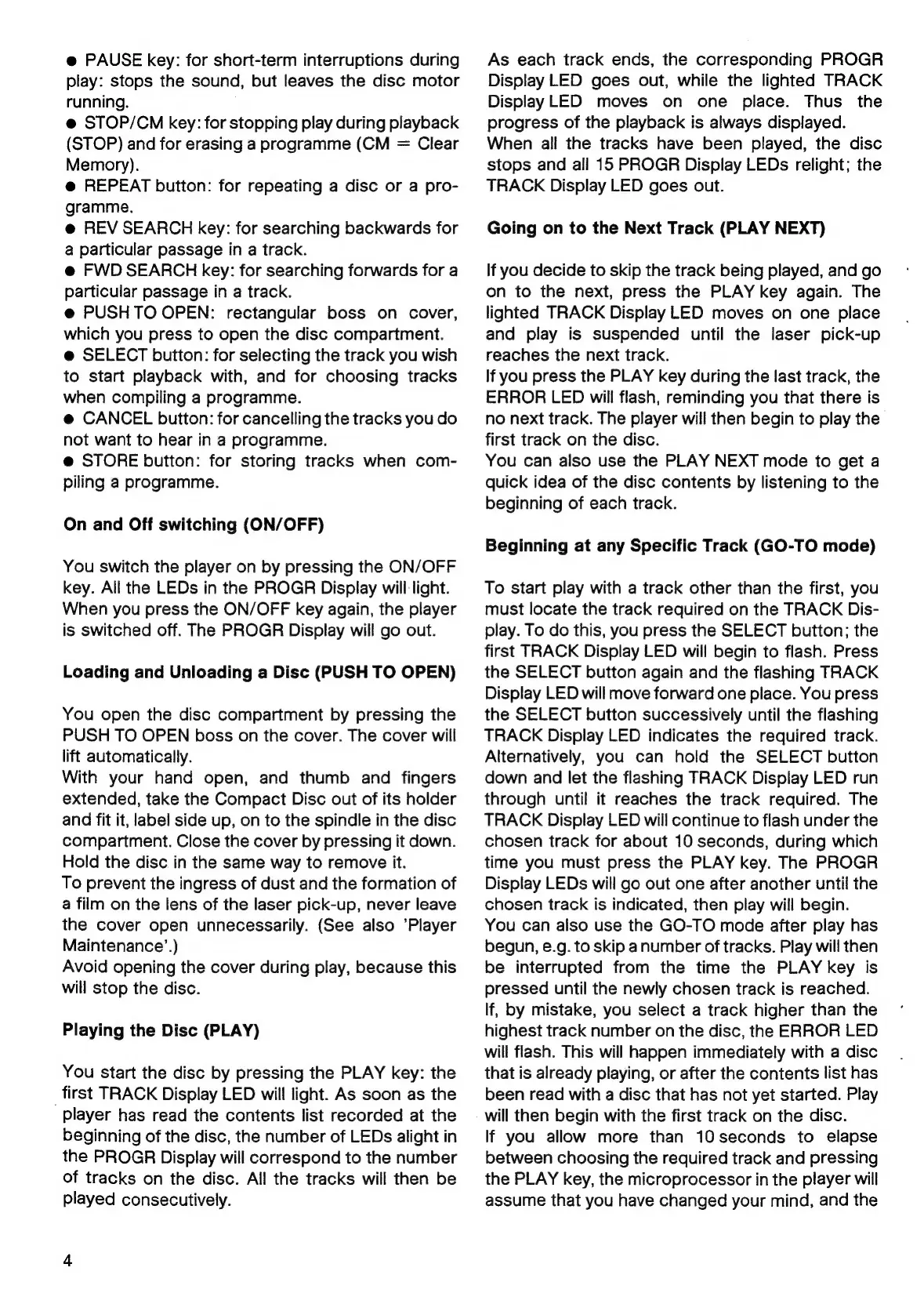 Philips CD 100 - Key Functions and Indicators; Disc Playback Modes