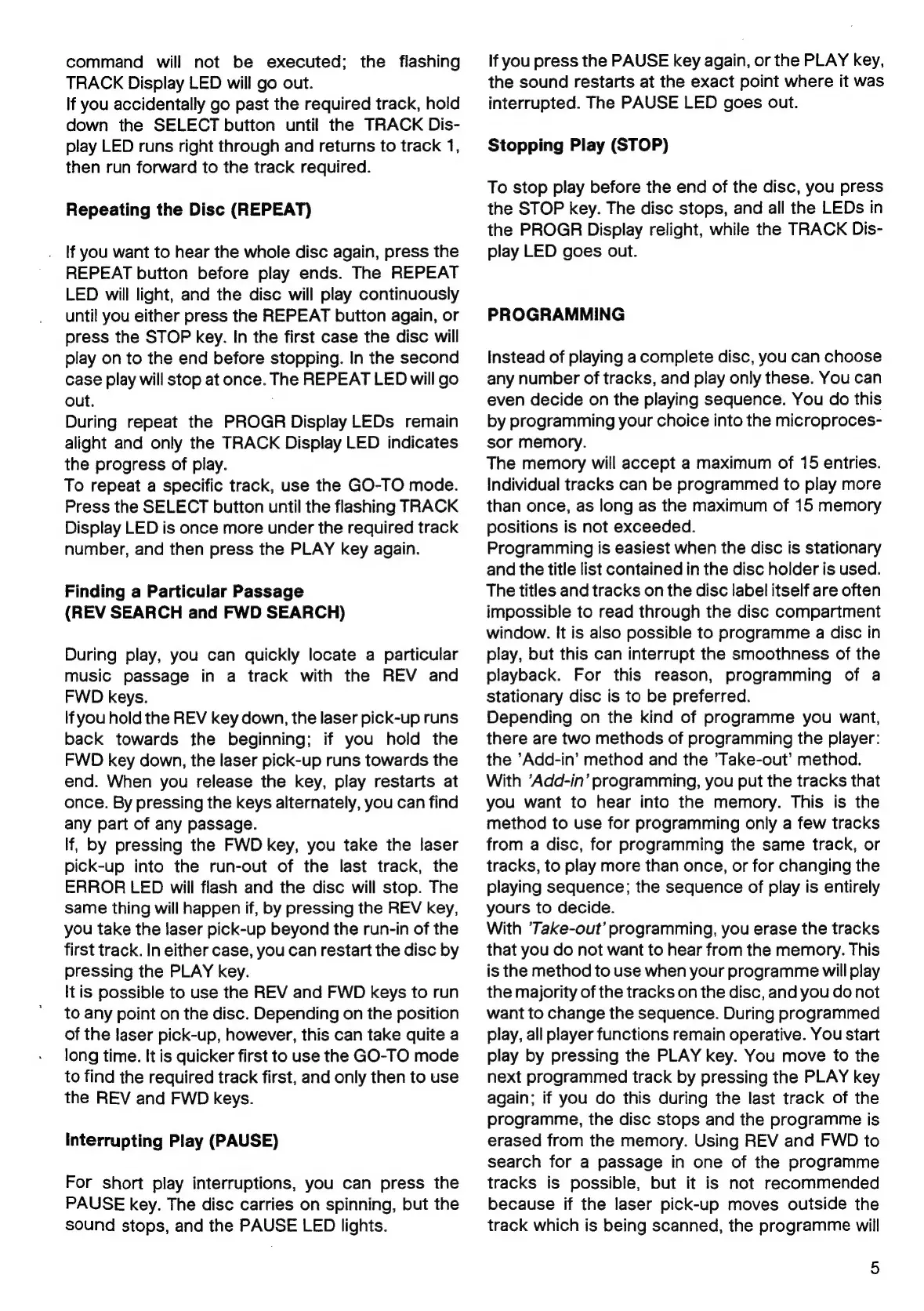 Philips CD 100 - Playback Interruption and Stopping; PROGRAMMING; Programming Methods