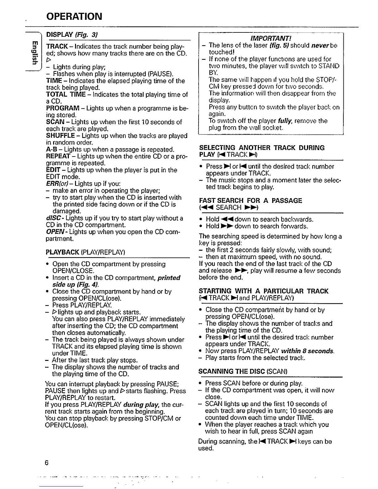 Philips CD 115 - Display (Fig. 3); Playback (Play;Replay)