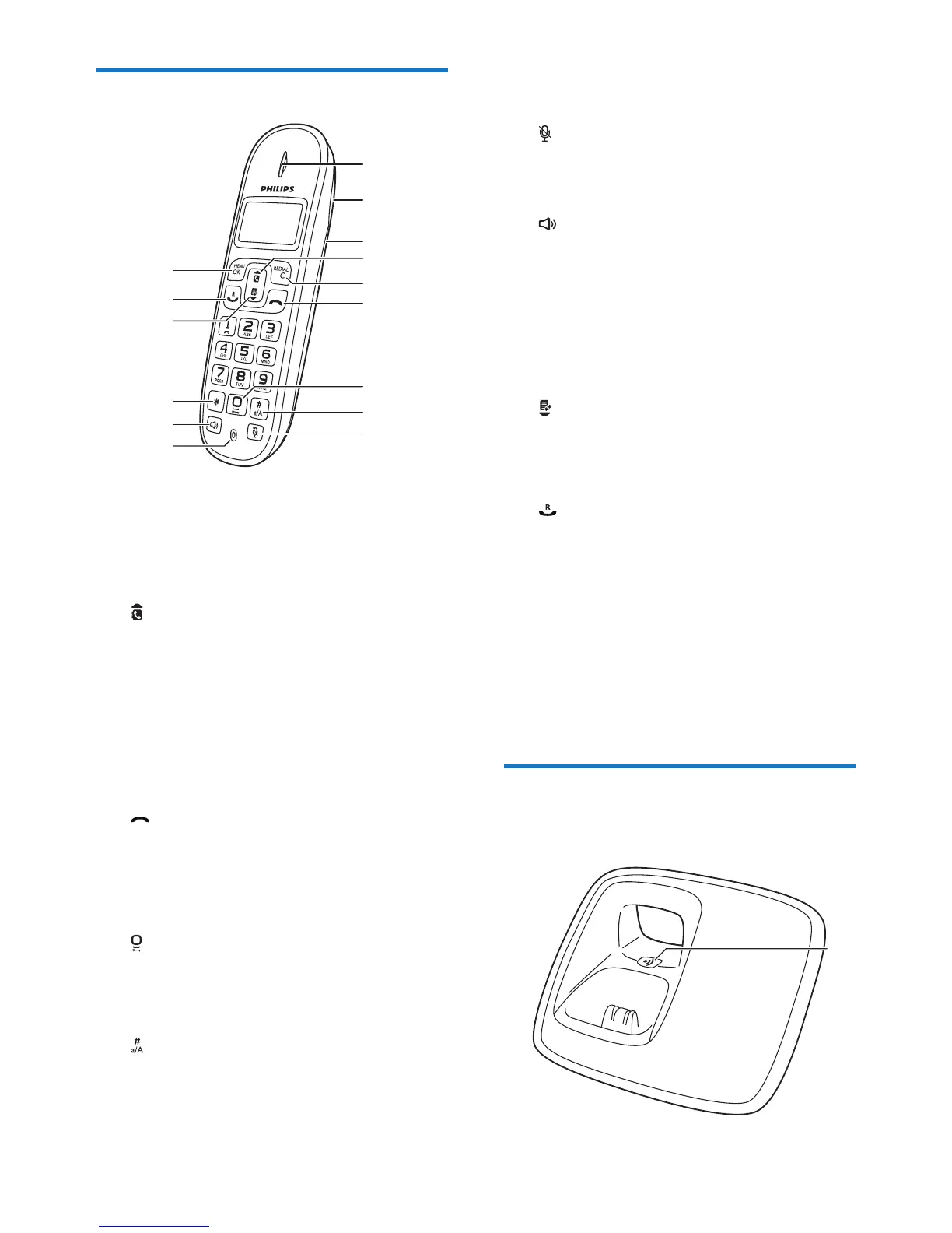 • Press and hold to switch the handset
