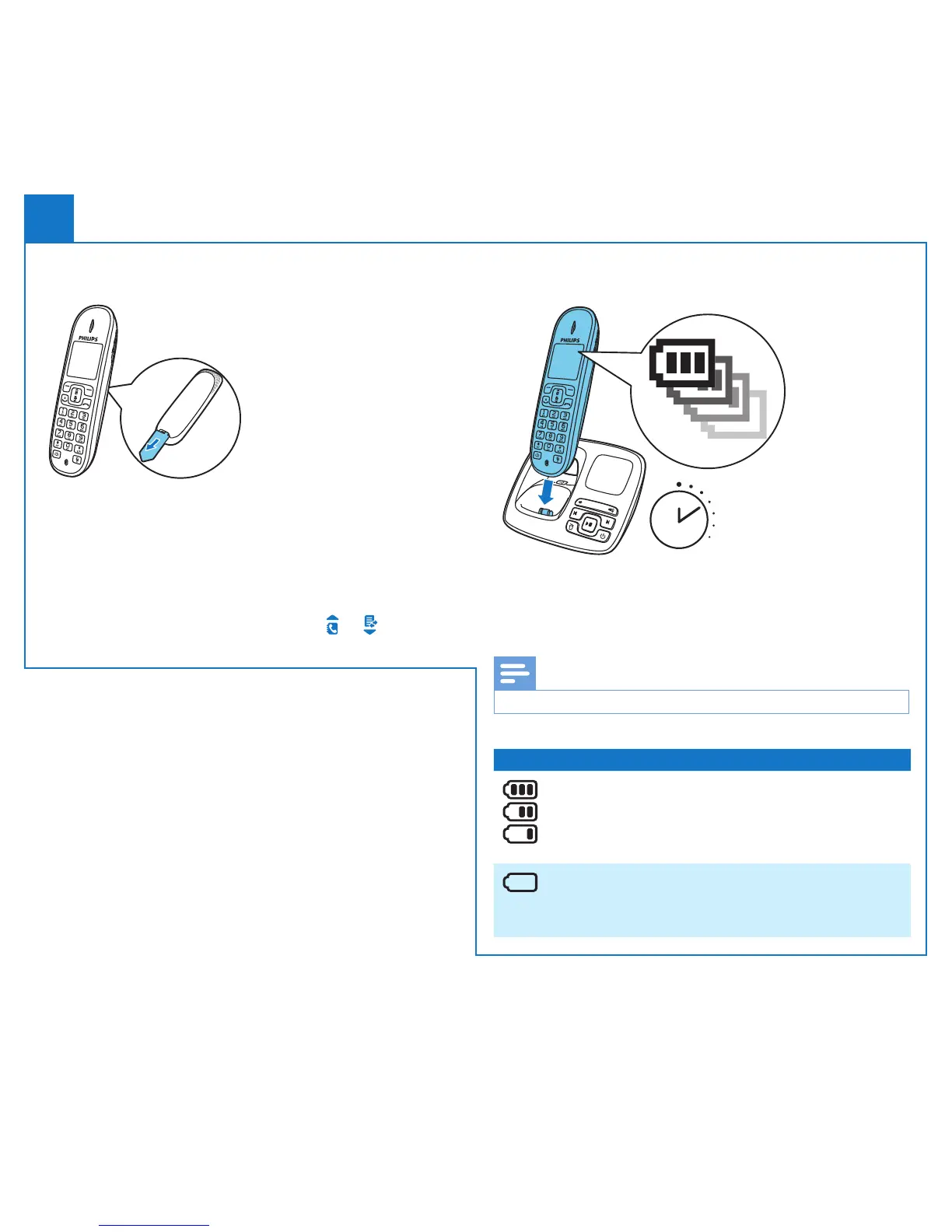 1 The batteries are pre-installed in the handset. Pull the