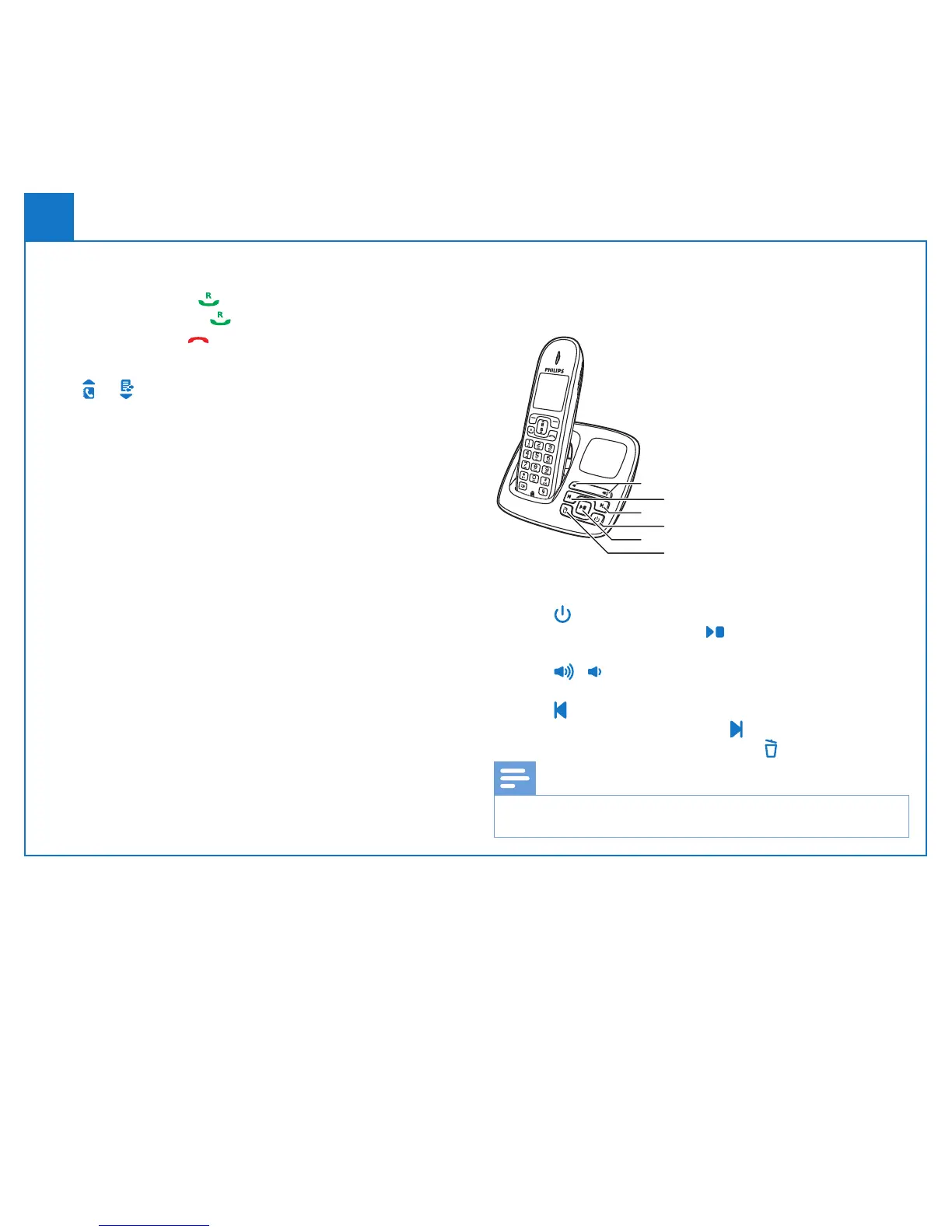 •To answer a call, press when the phone rings.