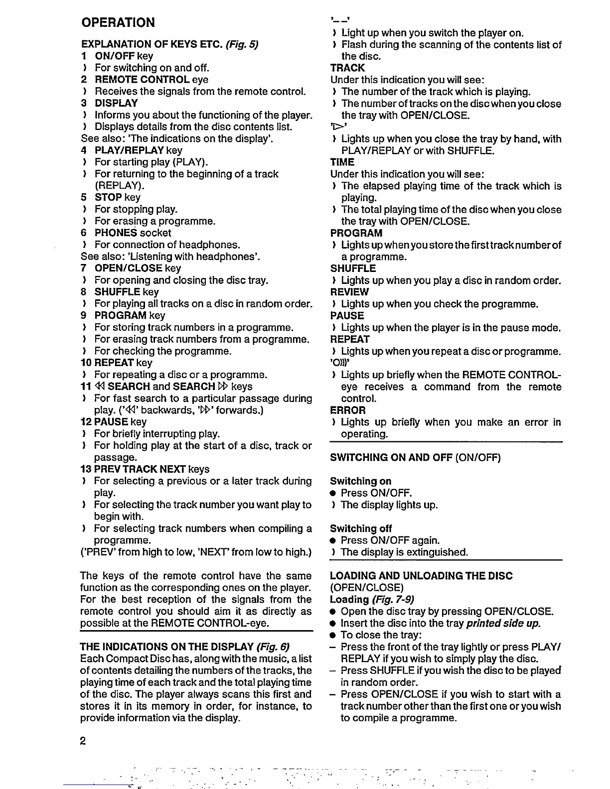 Philips CD 582 - OPERATION OVERVIEW; PLAYER CONTROLS AND DISPLAY INDICATIONS; BASIC OPERATIONAL PROCEDURES