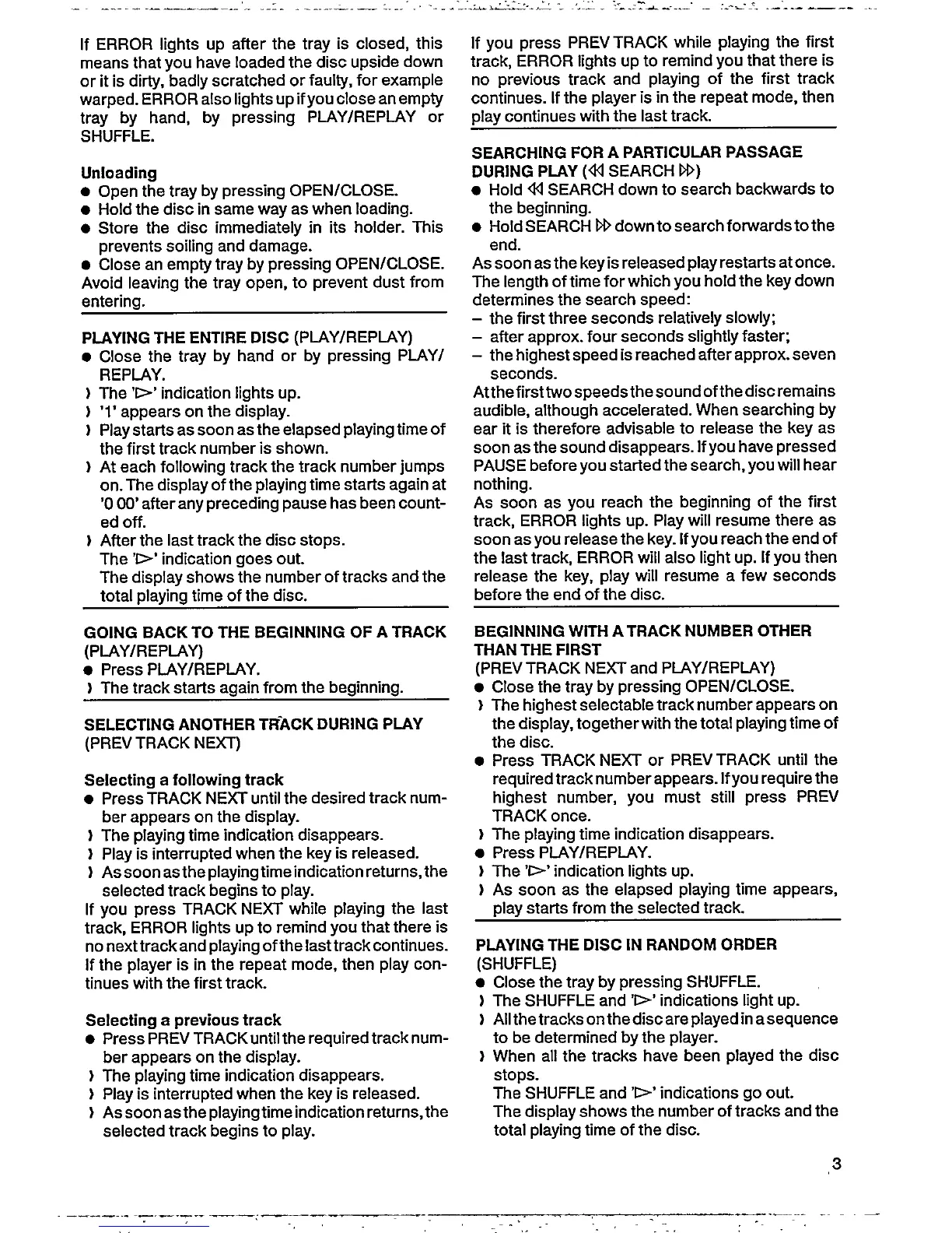 Philips CD 582 - PLAYBACK MODES AND NAVIGATION; PLAYING THE ENTIRE DISC; TRACK NAVIGATION AND SEARCH FUNCTIONS; RANDOM ORDER PLAYBACK