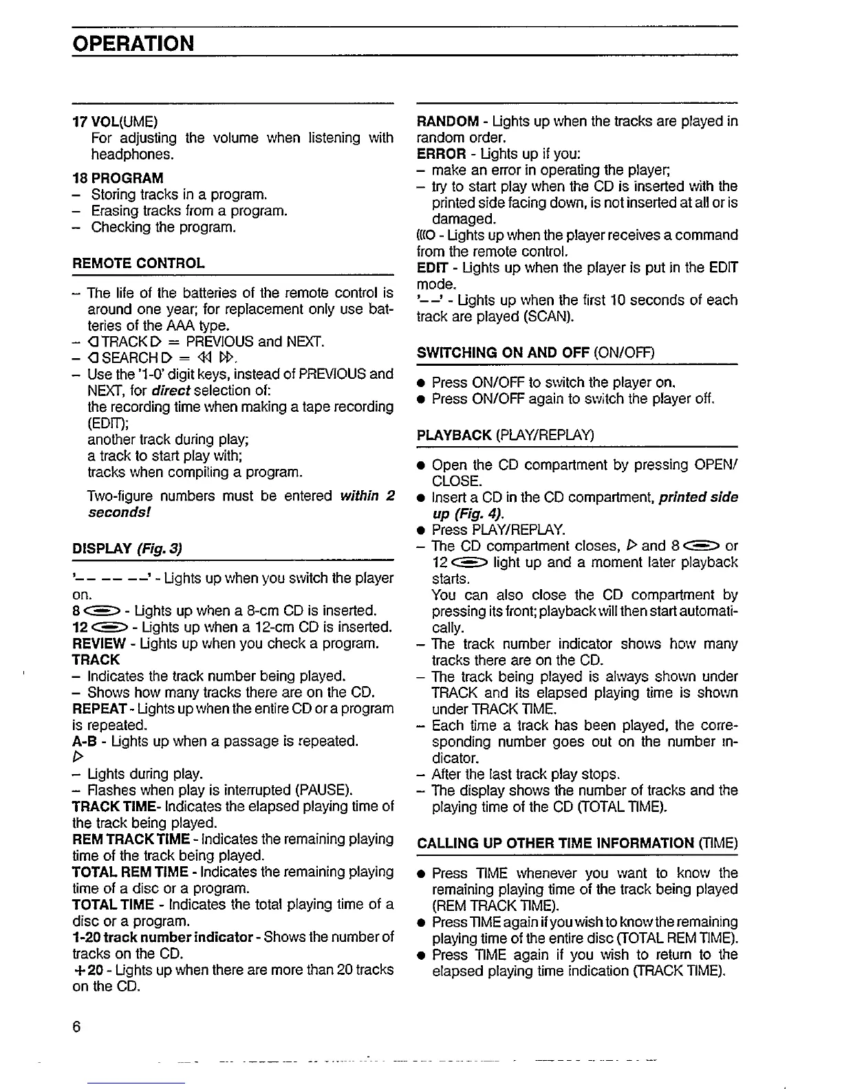 Philips CD 614 - Volume and Program Control; Display Indicators; Playback Functions