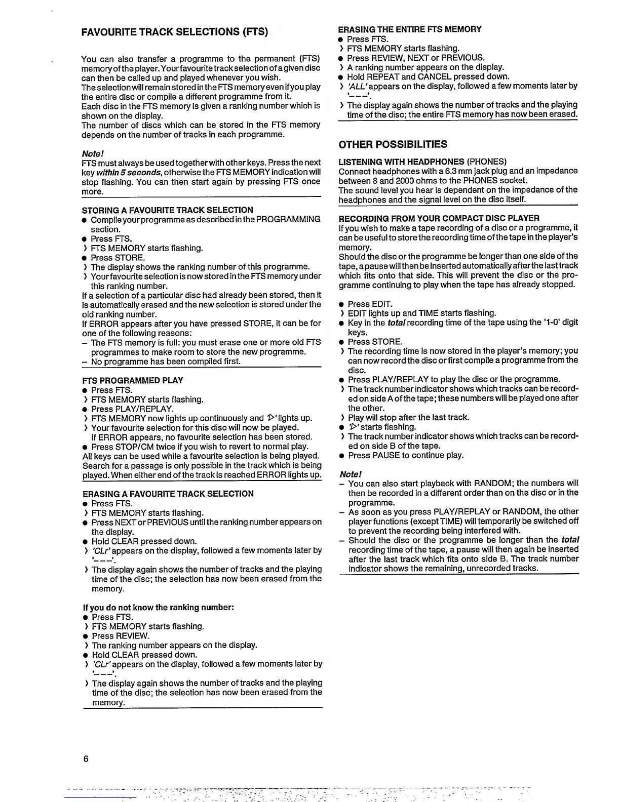Philips CD 620 - Favourite Track Selections and Recording; Managing Favourite Track Selections; Headphone Listening and Tape Recording