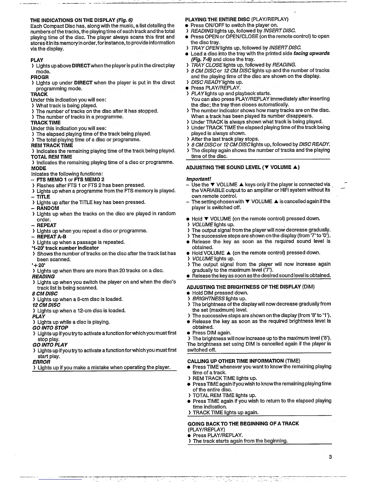 Philips CD 630 - DISPLAY AND BASIC PLAYBACK; Playing a Compact Disc