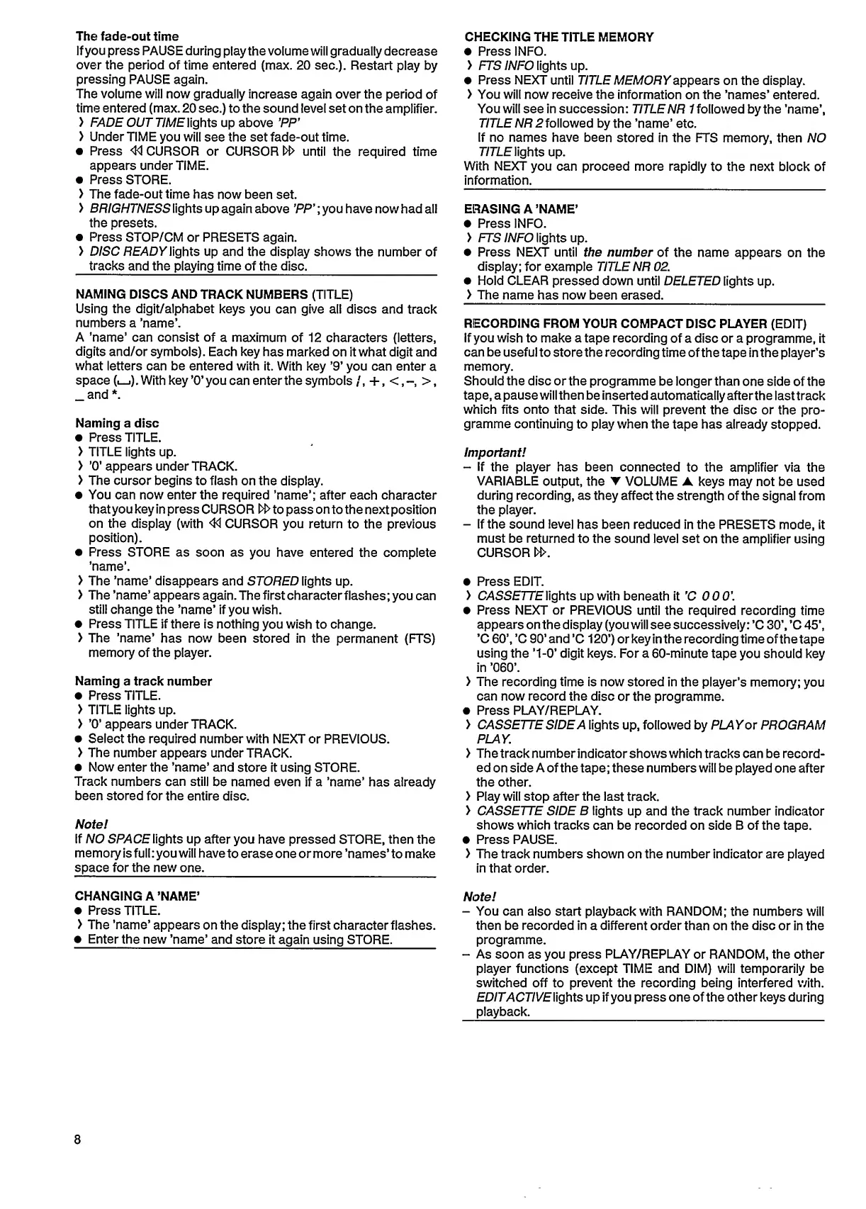 Philips CD 630 - PLAYER CUSTOMIZATION AND RECORDING SETUP; Managing Names and Recording Time