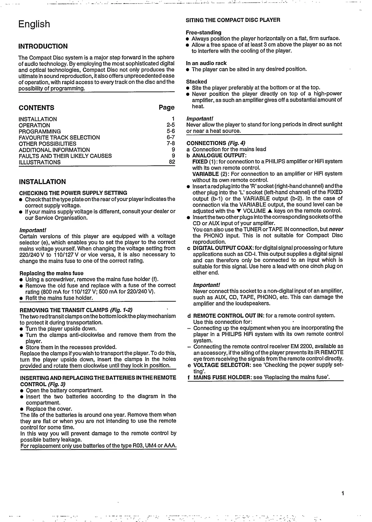 Philips CD 630 - INSTALLATION AND SETUP; Power Supply and Fuse Check; Siting and Connections