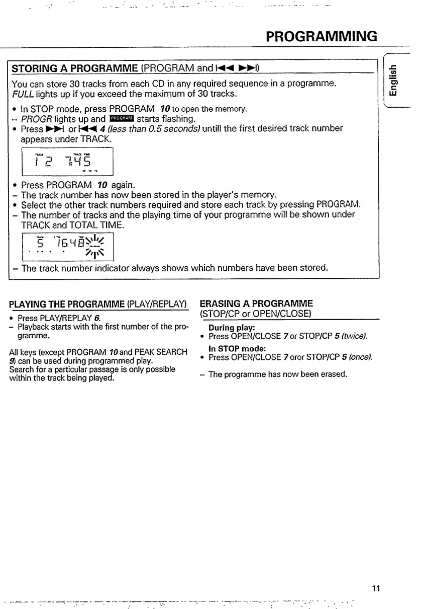 Philips CD 710 - Programming.11; Storing a Programme; Playing the Programme; Erasing a Programme