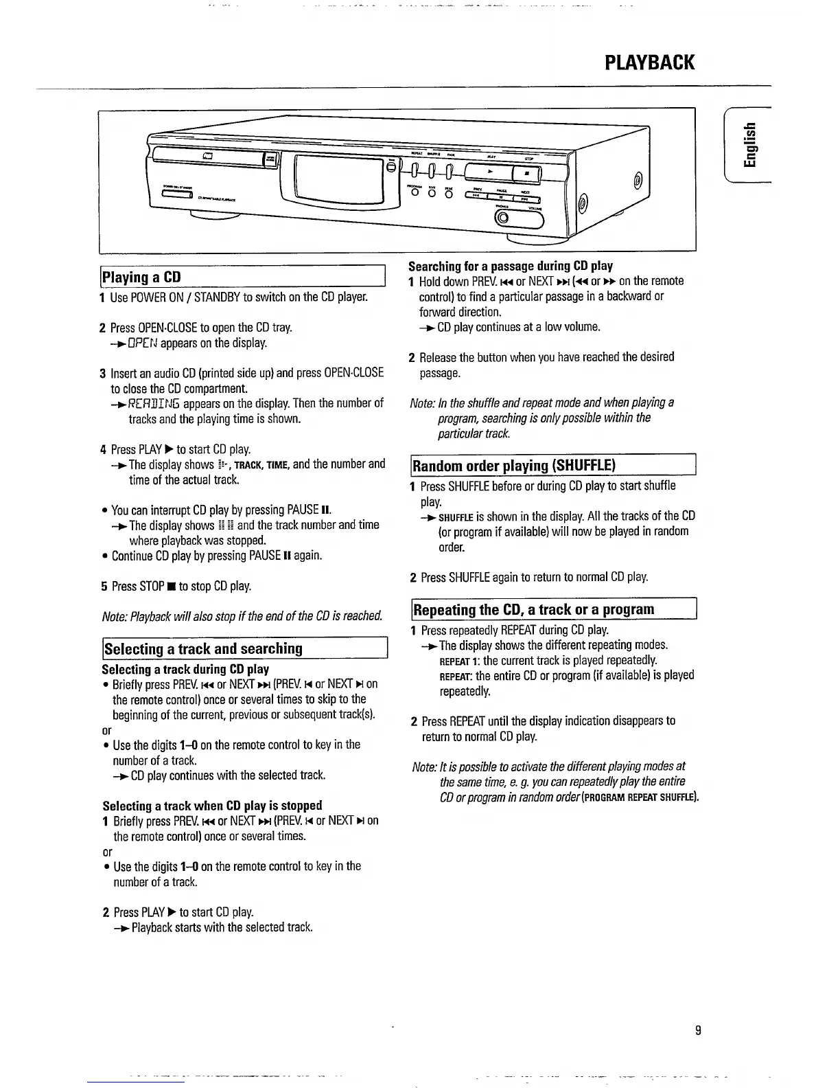 Philips CD 713 - Playback Operations; Basic CD Playback; Track Selection and Searching; Special Playback Modes