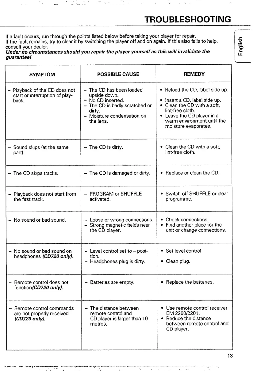 Philips CD 720 - Troubleshooting