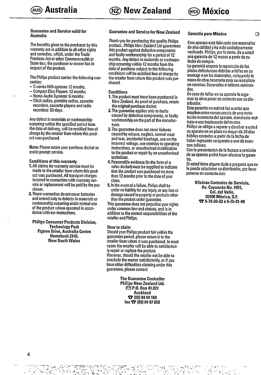 Philips CD 720 - Guarantee and Service; Australia; New Zealand; Mexico