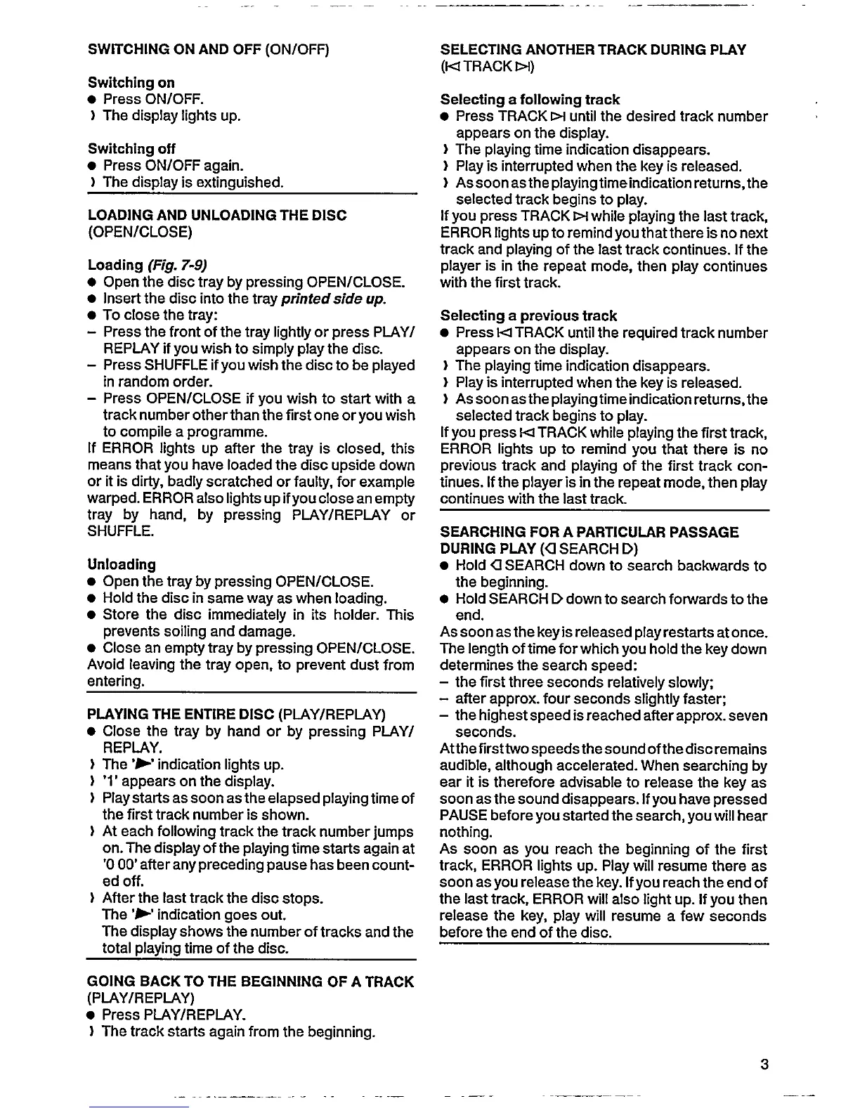 Philips CD 780 - Basic Playback Functions; Powering On;Off and Disc Handling; Starting and Controlling Playback; Track and Passage Searching