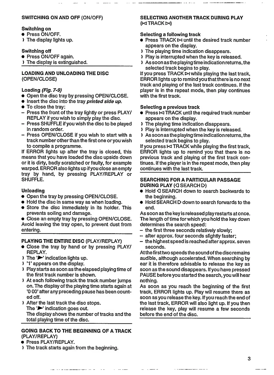 Philips CD 780 - Basic Playback Functions; Powering On;Off and Disc Handling; Starting and Controlling Playback; Track and Passage Searching
