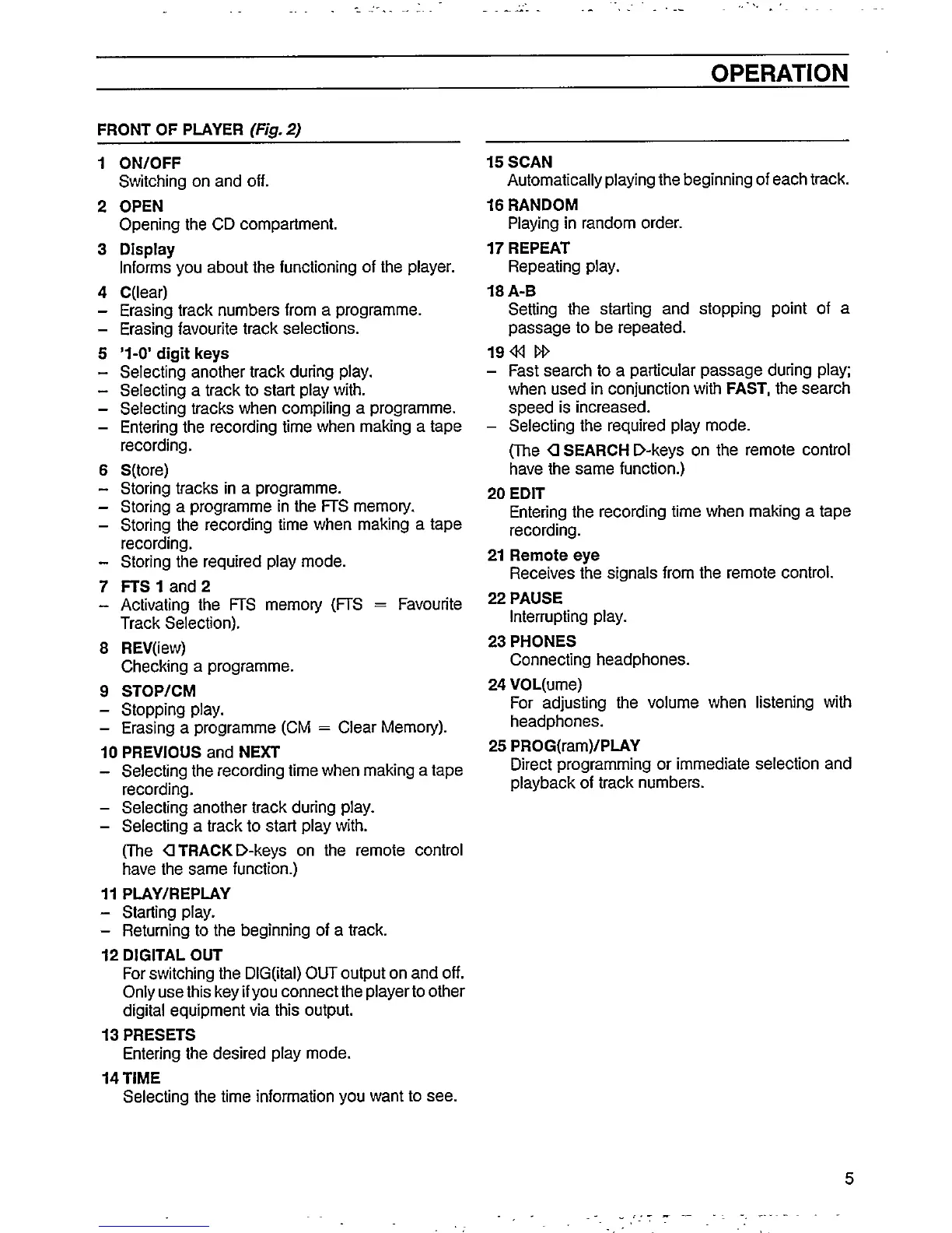 Philips CD 824 - Operating the CD Player; Front Panel Controls and Display; Track Selection and Playback; Programming and Memory Functions