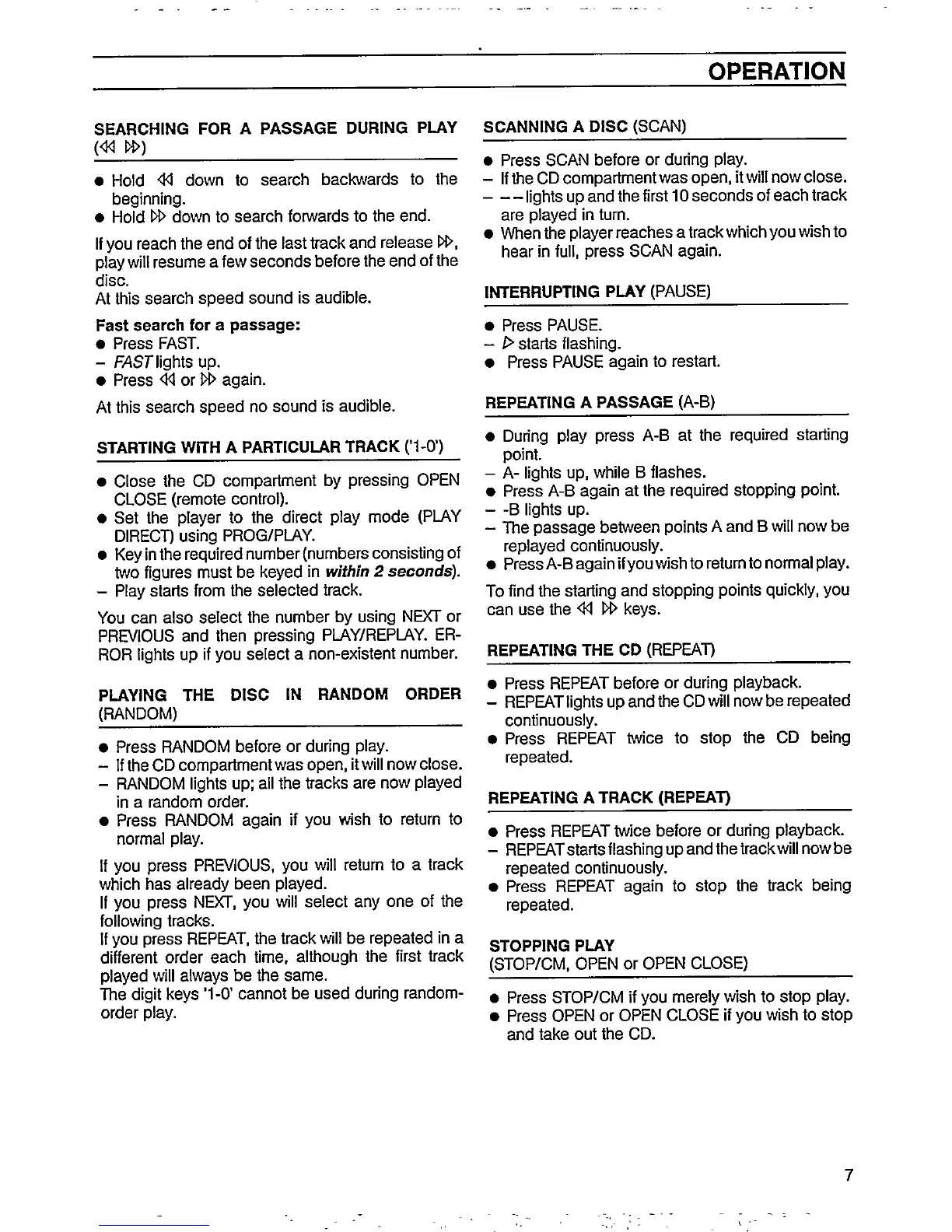 Philips CD 824 - Special Playback Modes; Searching and Repeating; Specific Track and Passage Selection