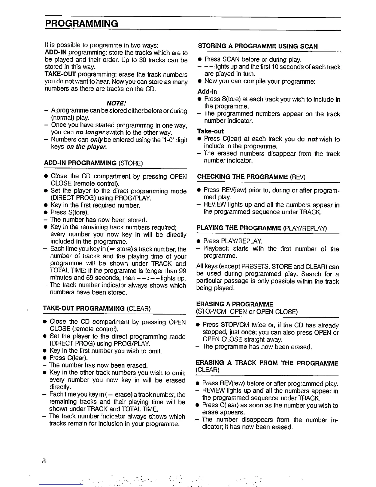 Philips CD 824 - Programming and Favourite Track Selections; Programme Creation Methods; Programme Management
