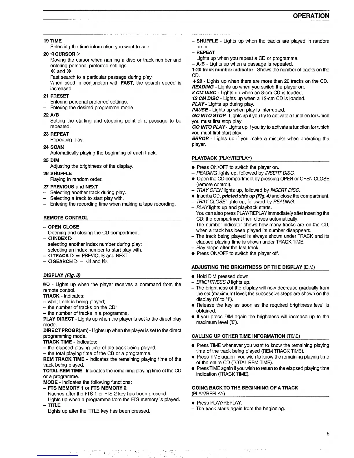 Philips CD 850 - Remote Control and Display Indicators; Playback and Adjustment Functions