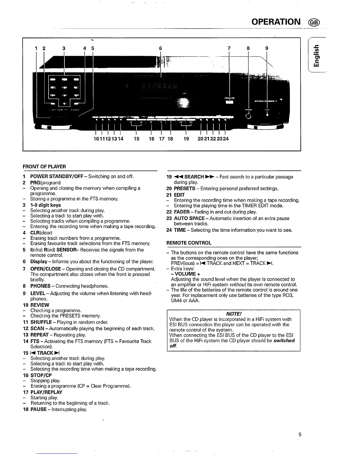 Philips CD 931 - Operation; Front Panel Controls Overview; Remote Control Operation