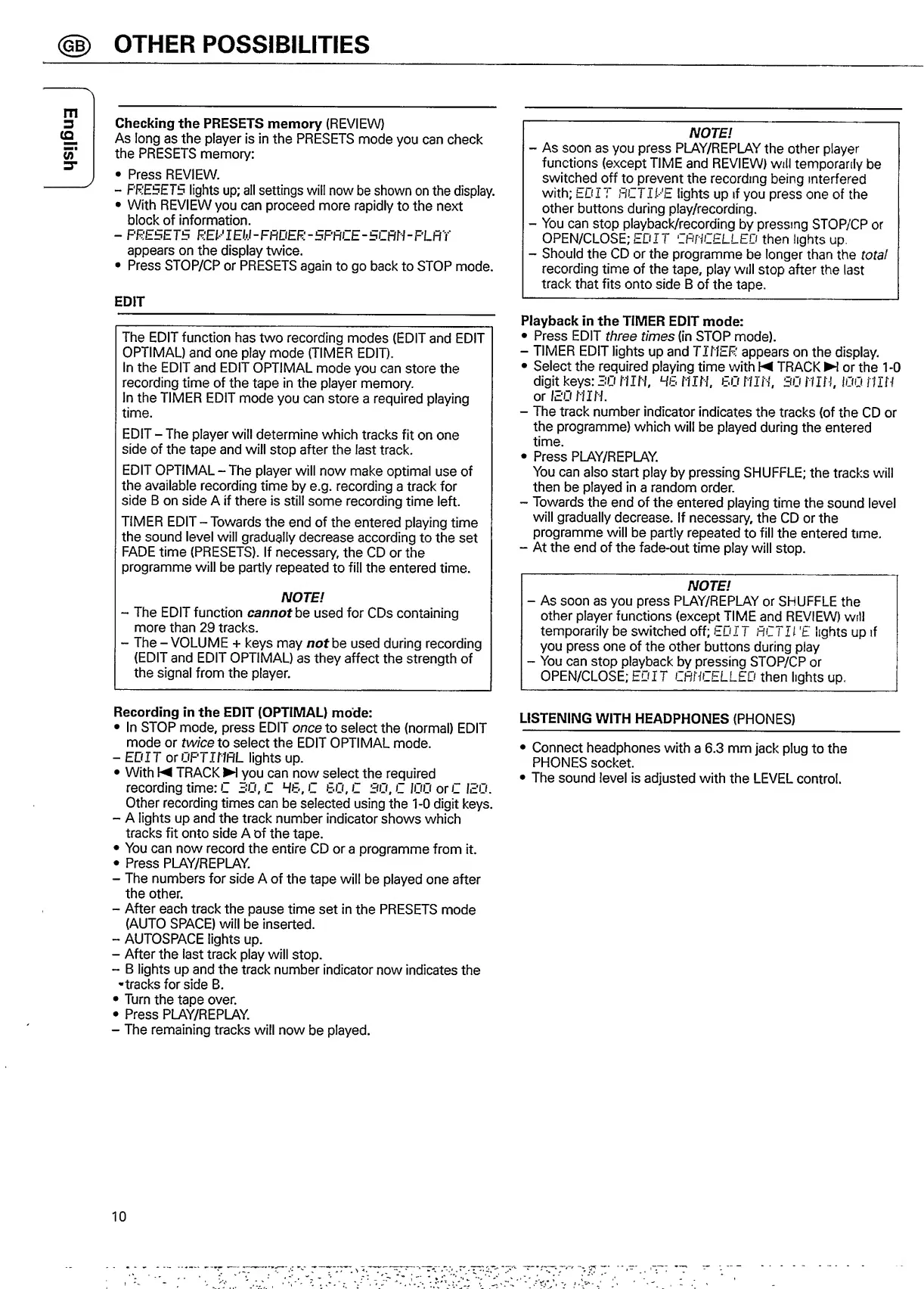 Philips CD 931 - Advanced Features and Editing; Checking Presets and Editing Modes; Headphone Listening