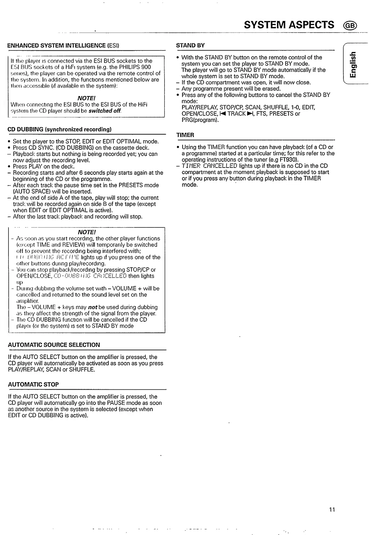 Philips CD 931 - System Aspects; Enhanced System Intelligence (ESI); CD Dubbing and Auto Functions