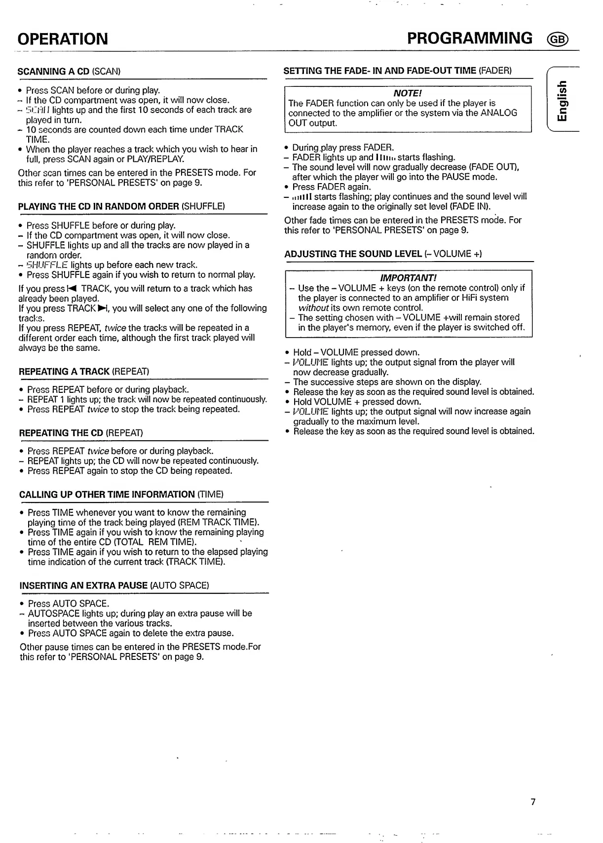 Philips CD 931 - Advanced Playback Features; CD Operations and Timing; Audio Adjustment and Fading
