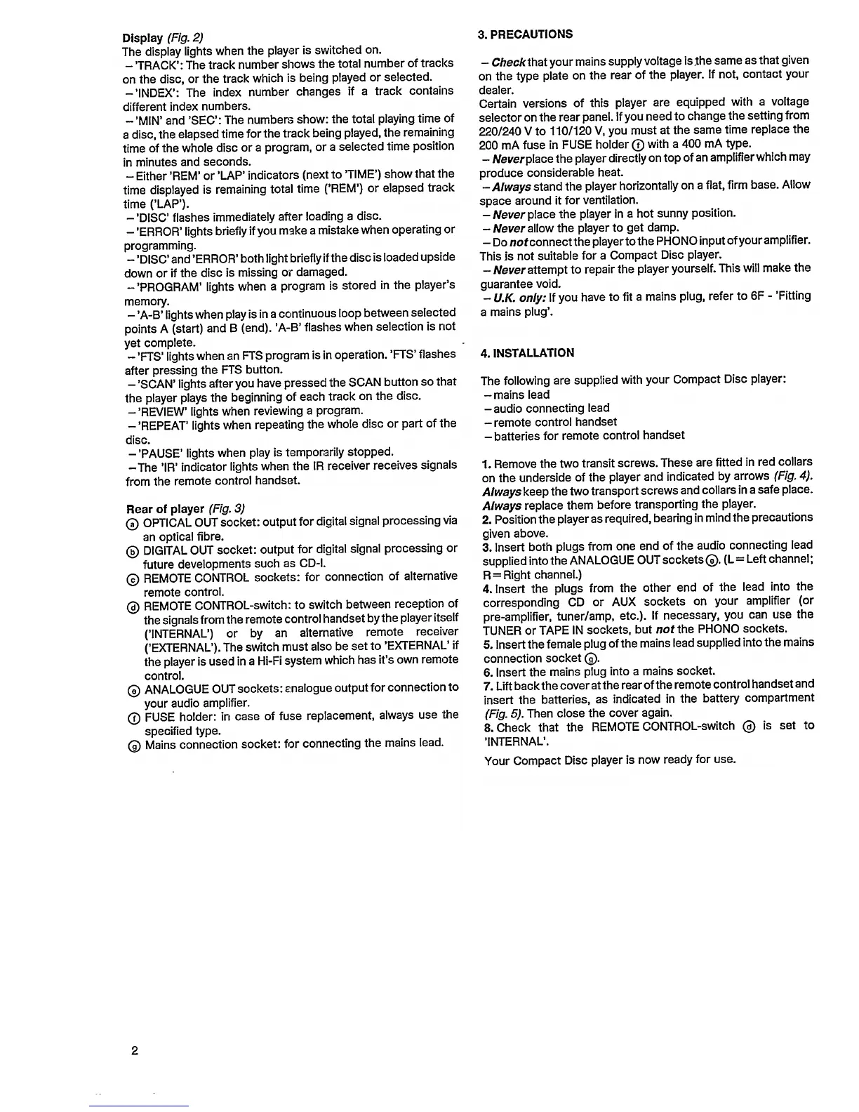 Philips CD 960 - 3. PRECAUTIONS; Safety and Environmental Warnings; 4. INSTALLATION; Connecting the Player