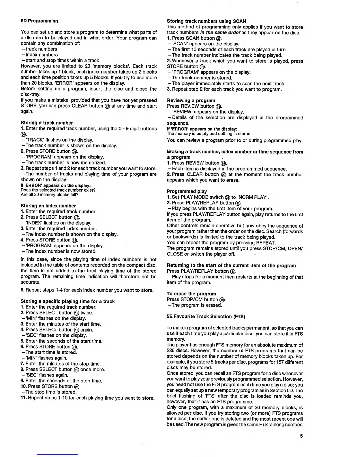Philips CD 960 - 5 C Possibilities at Start of Play; 5 D Programming