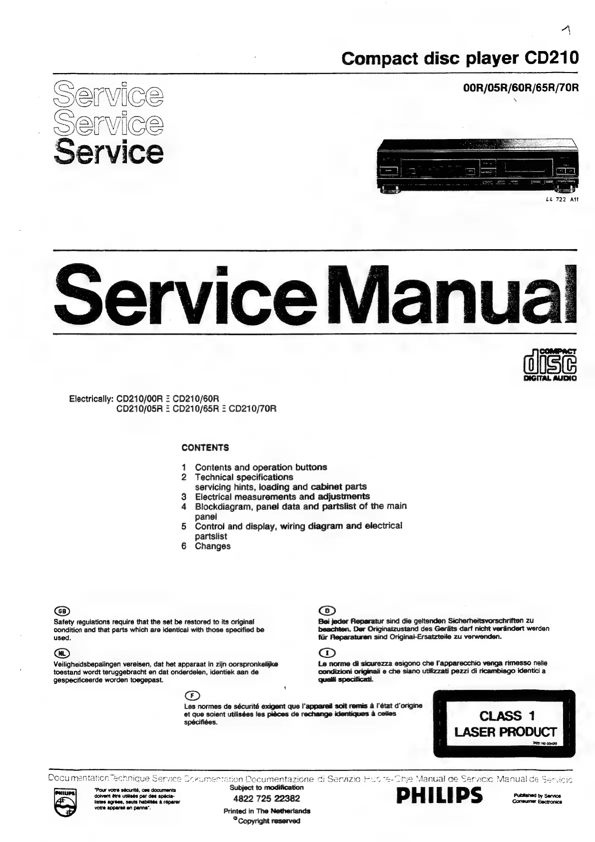 Philips CD210 - Digital Audio; Class 1 Laser Product