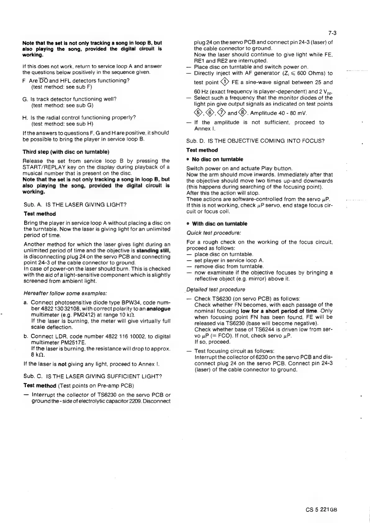 Philips CD304 MK II - Laser Functionality Checks