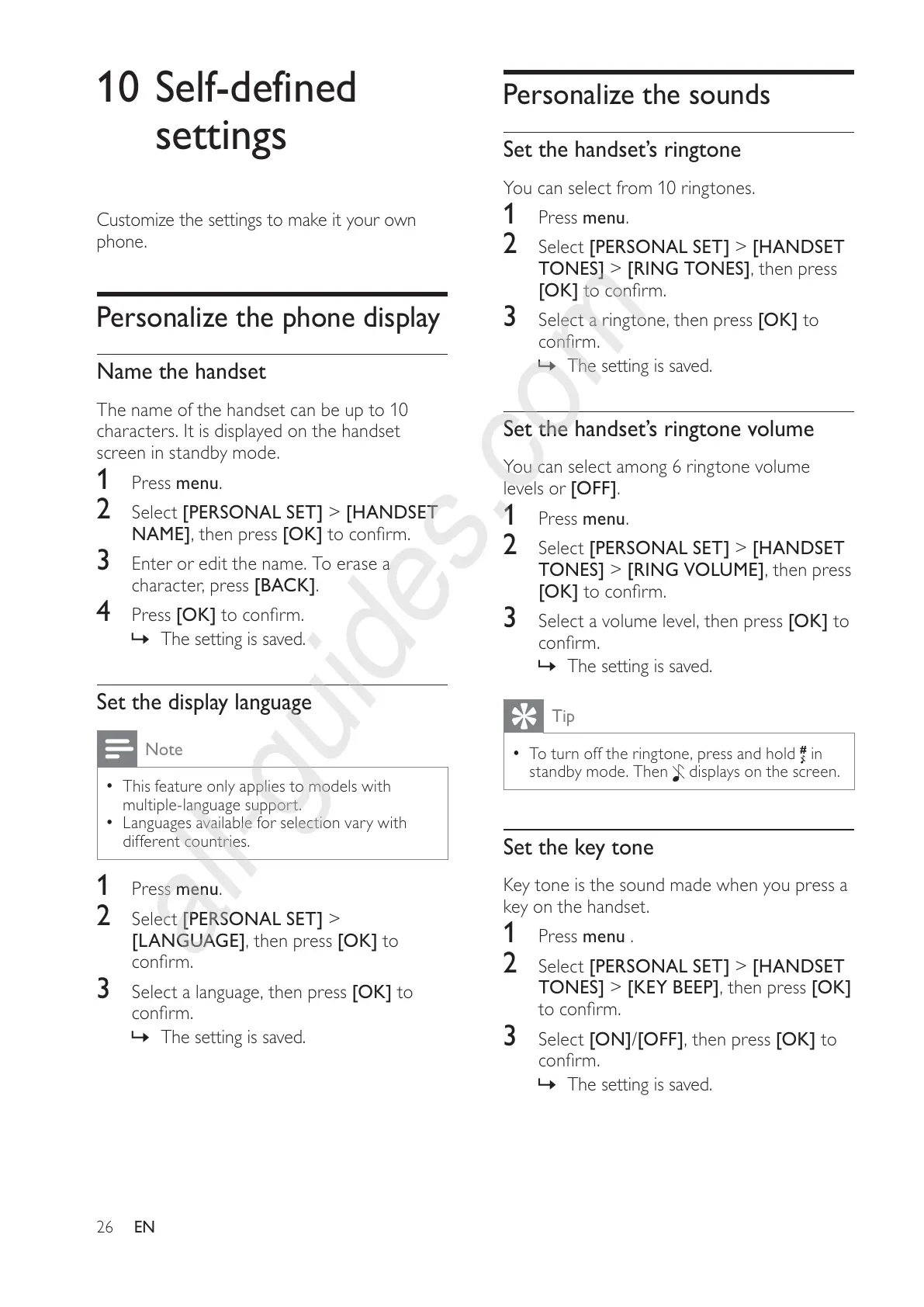 Set the handset’s ringtone volume