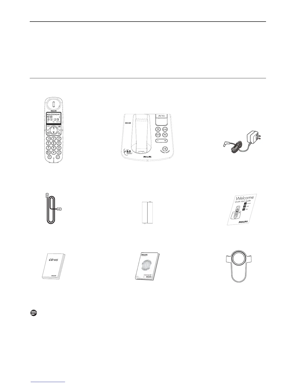 In multihandset packs, you will find one or more additional handsets, chargers with power supply