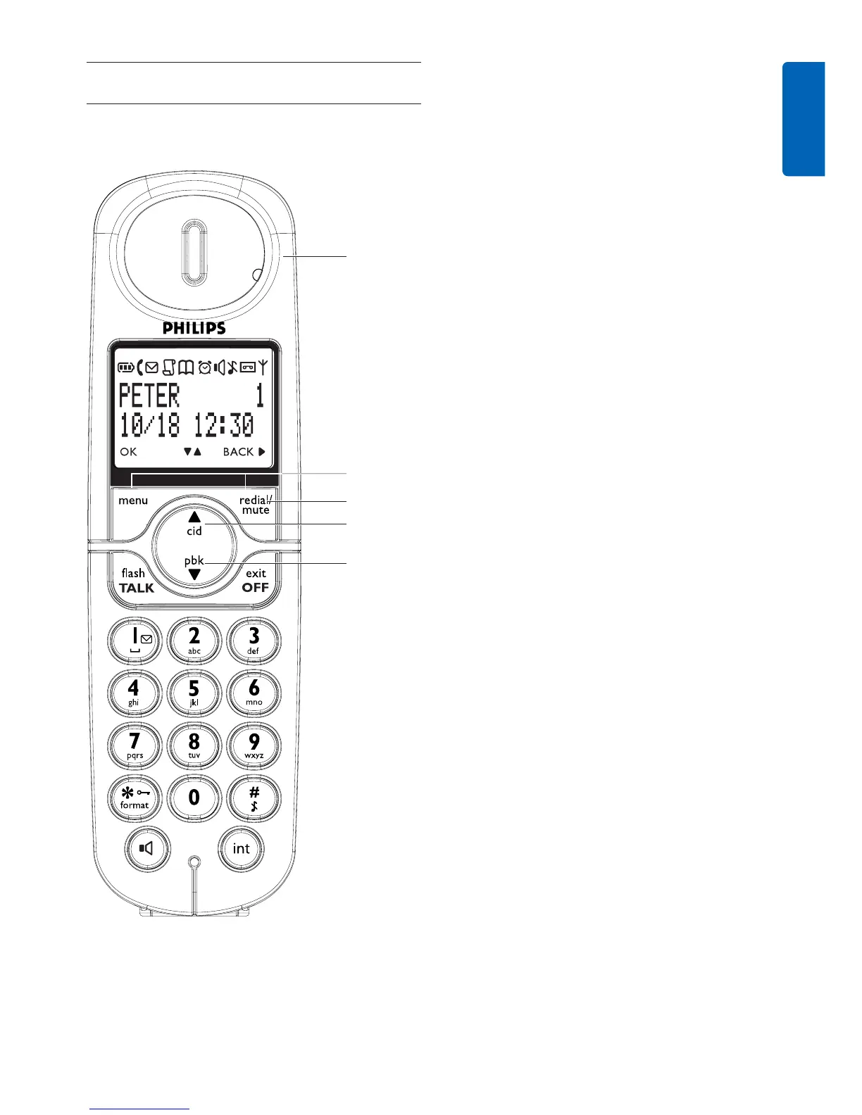 In idle mode: Press to access phonebook