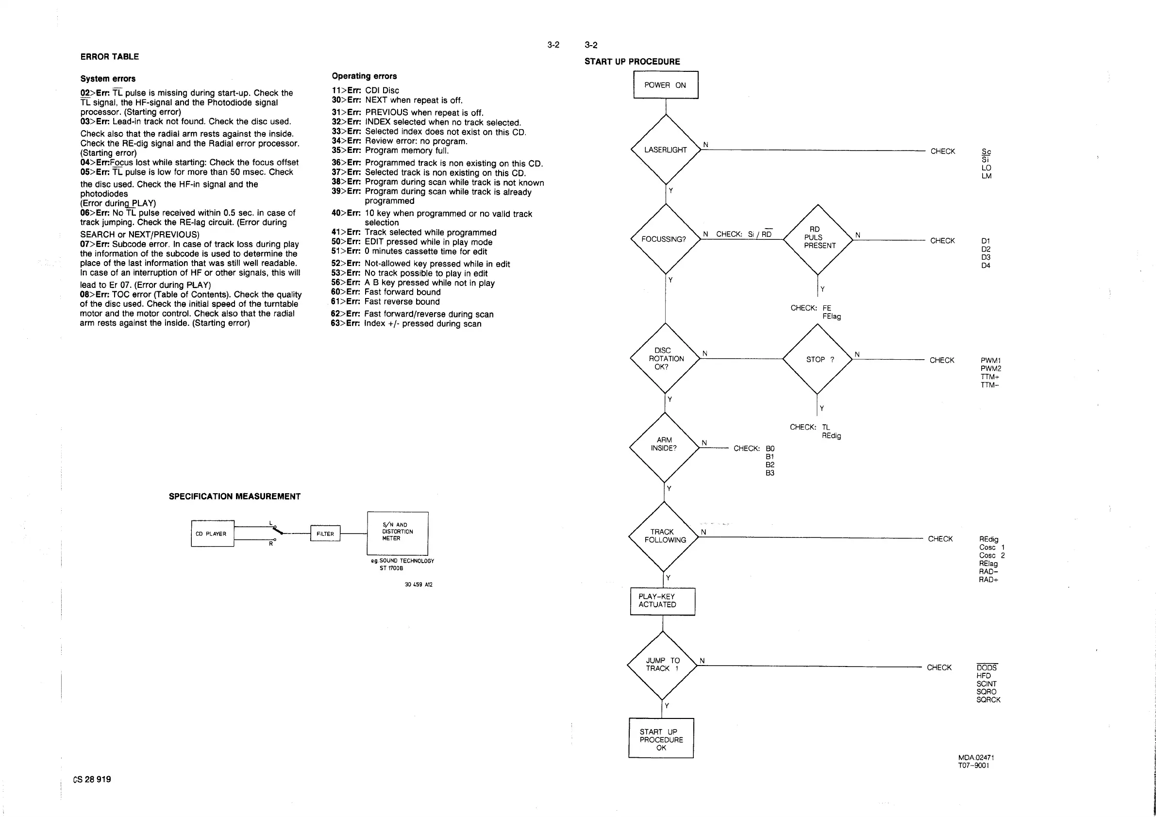 Philips CD604 - System Error Codes and Startup; Error Table and Descriptions; Start-up Procedure Flowchart