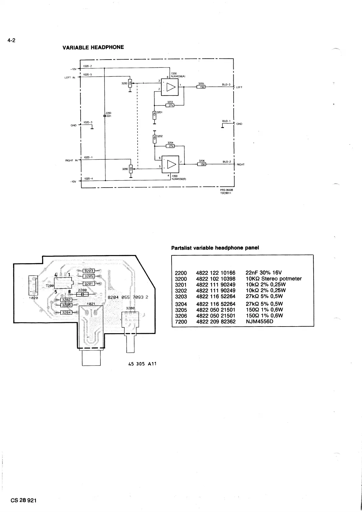 Philips CD604 - Circuit Diagrams; Variable Headphone Circuit and Partslist