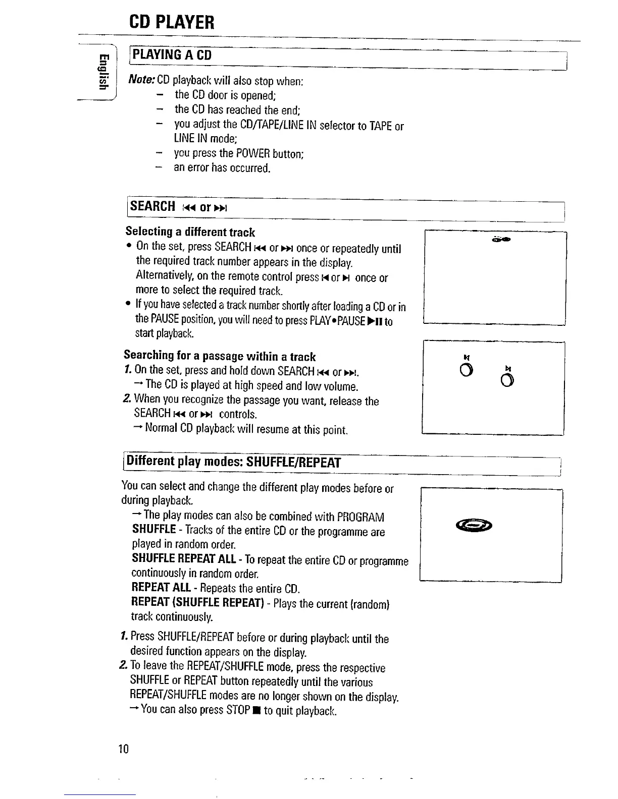 Philips CD6660/00 - CD Player; Playing a CD; Search; Different Play Modes: Shuffle;Repeat
