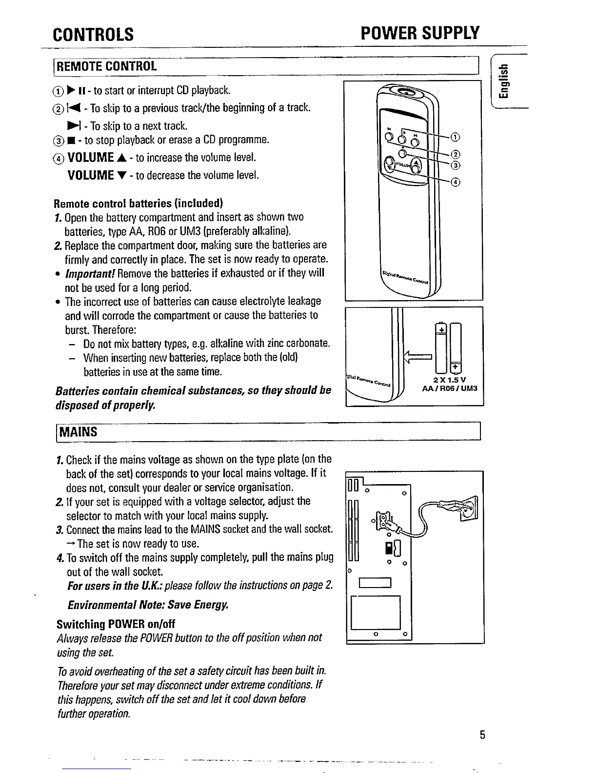 Philips CD6660/00 - Power Supply; Remote Control; Mains; Switching Power On;Off
