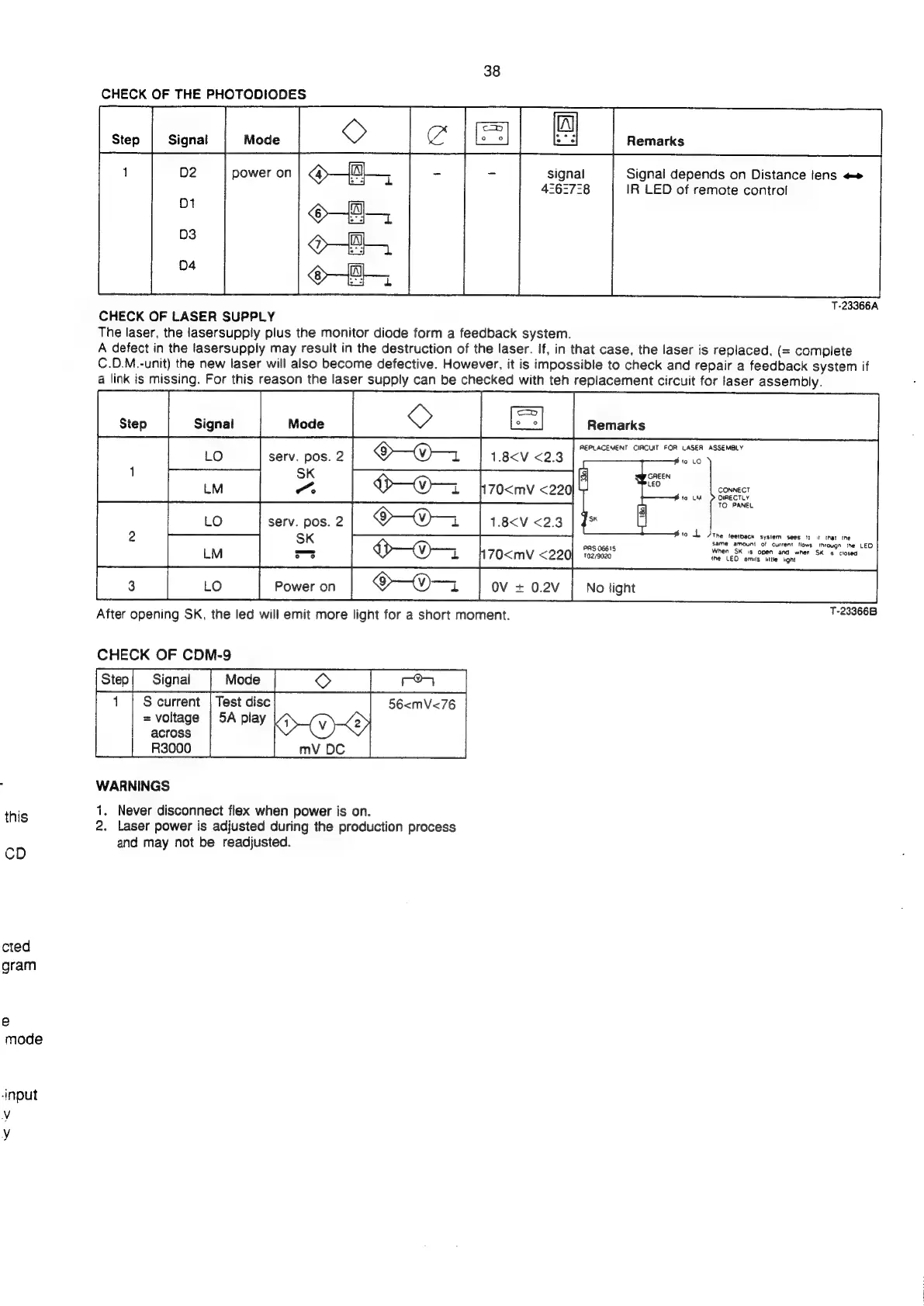 Philips CD690 - Component Checks; Photodiode, Laser Supply, CDM-9 Checks; Safety Warnings During Checks