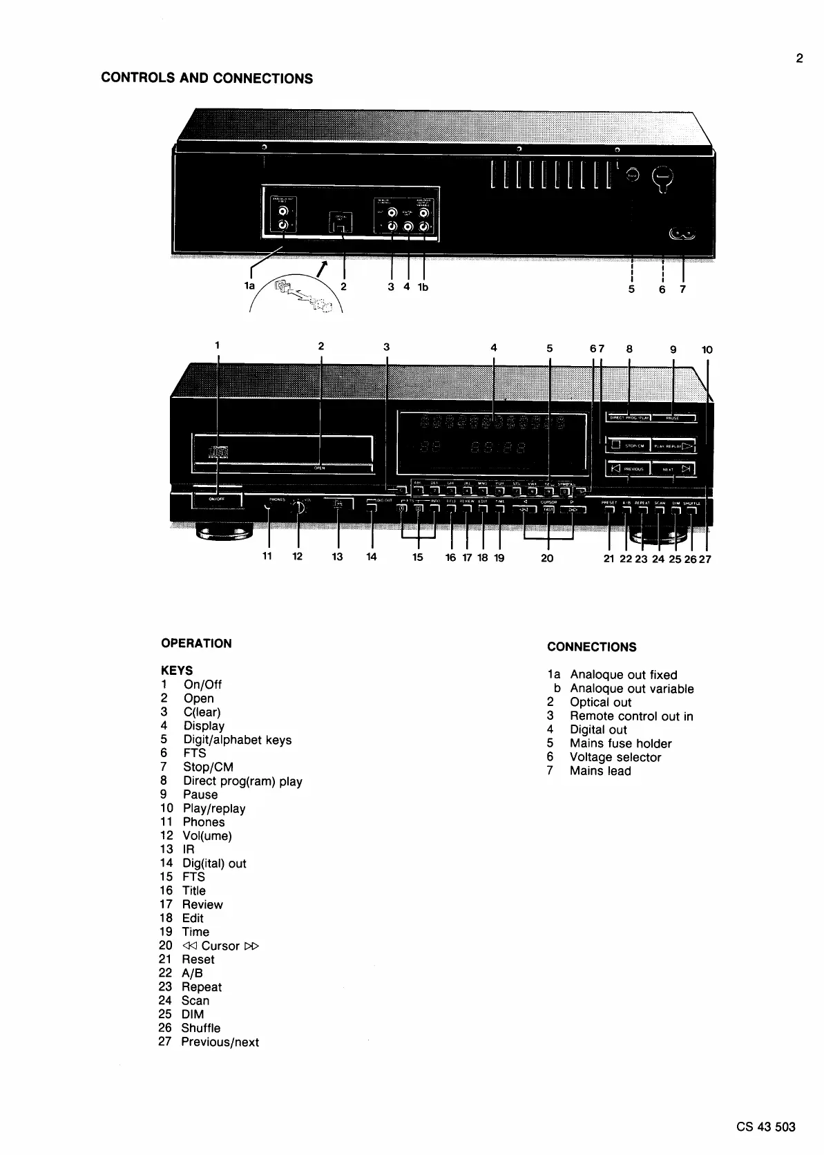 Philips CD850II - Controls and Connections; Front Panel Operation; External Connections