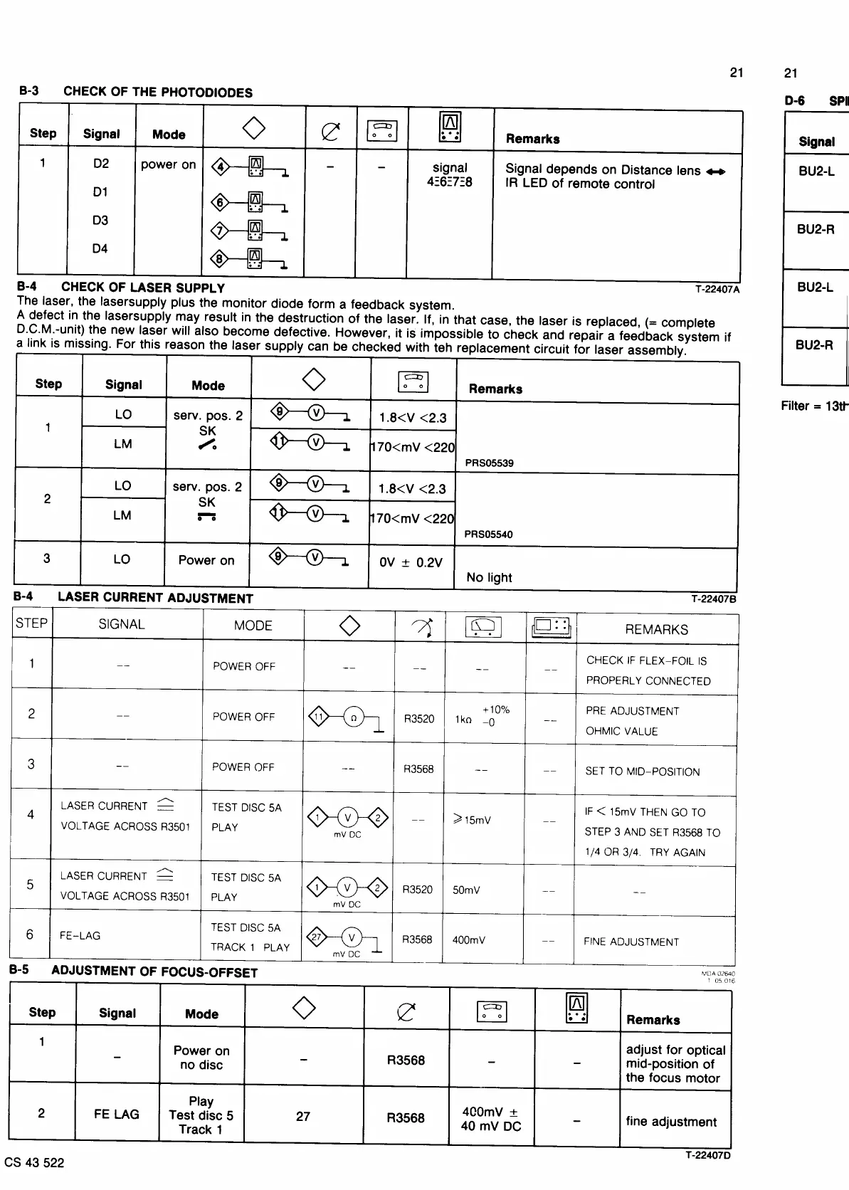 Philips CD850II - Electrical Adjustments and Measurements; Photodiode and Laser Checks; Laser Current and Focus Adjustments