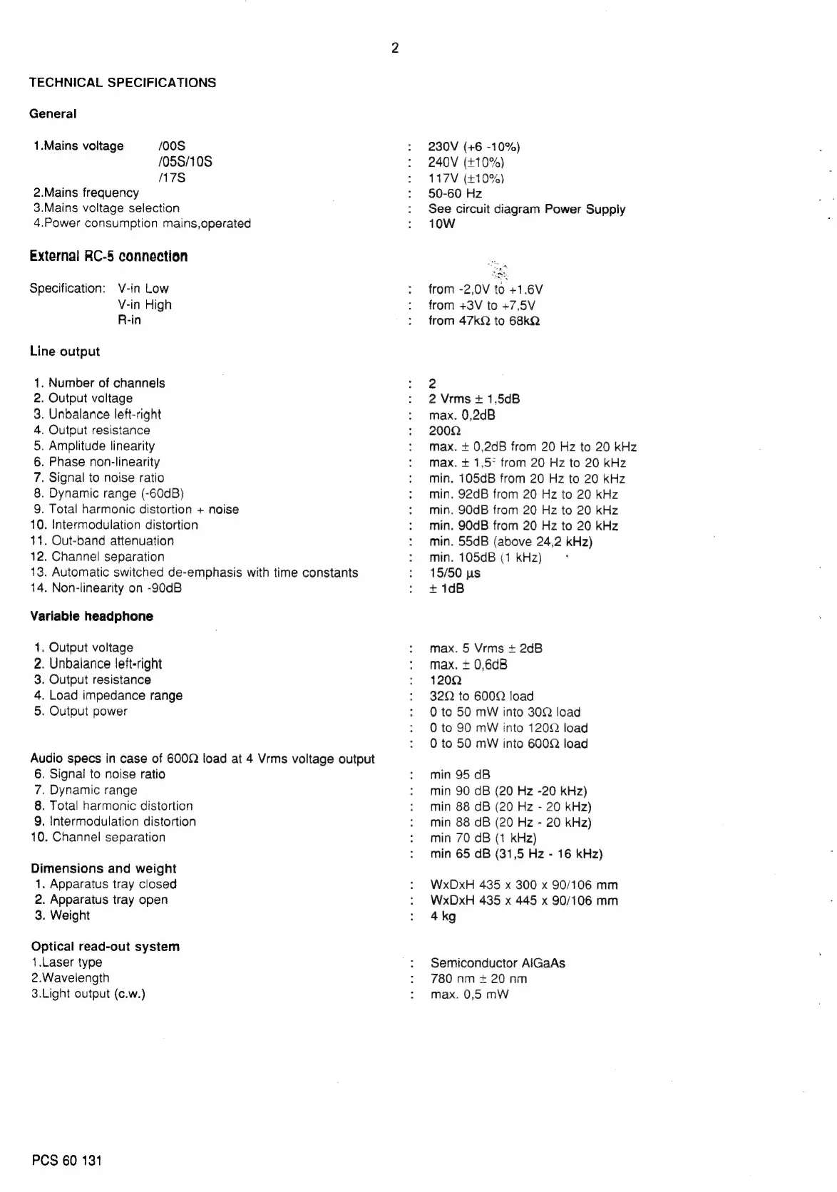 Philips CD950 - Technical Specifications