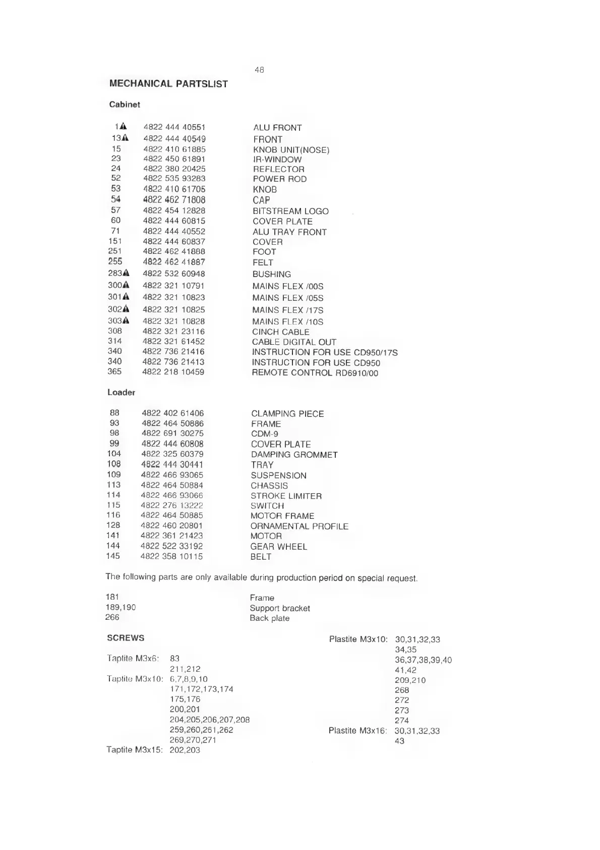 Philips CD950 - Mechanical Partslist